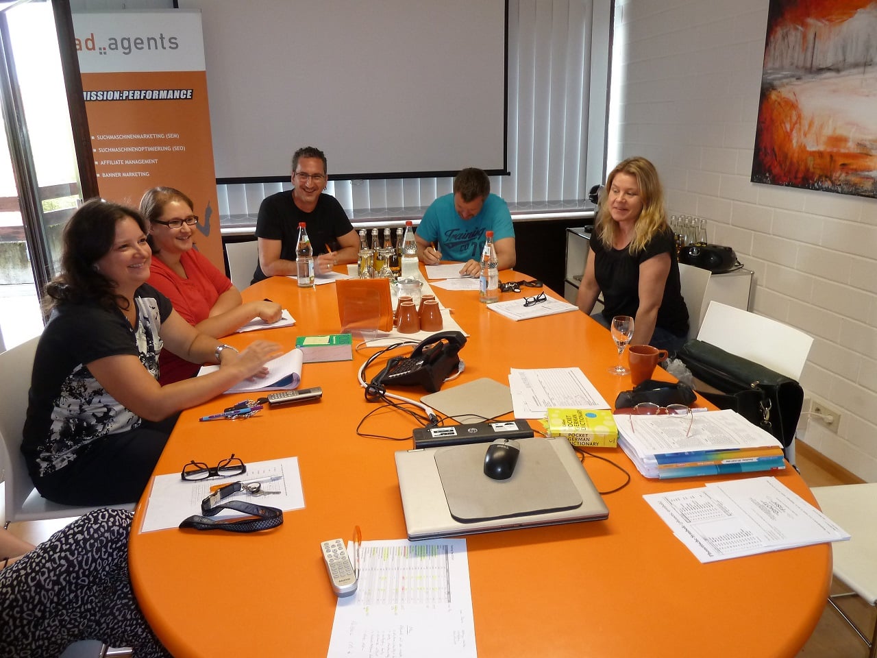 Immer mehr internationale Kunden erfordern ein hohes Englisch-Sprachniveau bei den ad agents. Damit dieses gewährleistet wird, drücken einige Mitarbeiter einmal wöchentlich die Schulbank. In drei verschiedenen Gruppen werden englische Grammatik, Textverständnis und Sprachgewandtheit trainiert und verbessert. Mit speziellen Beispielen aus Kundensituationen und der Anpassung der Lessons auf Online Marketing Bedürfnisse können wir schon jetzt von dem Unterricht profitieren.
